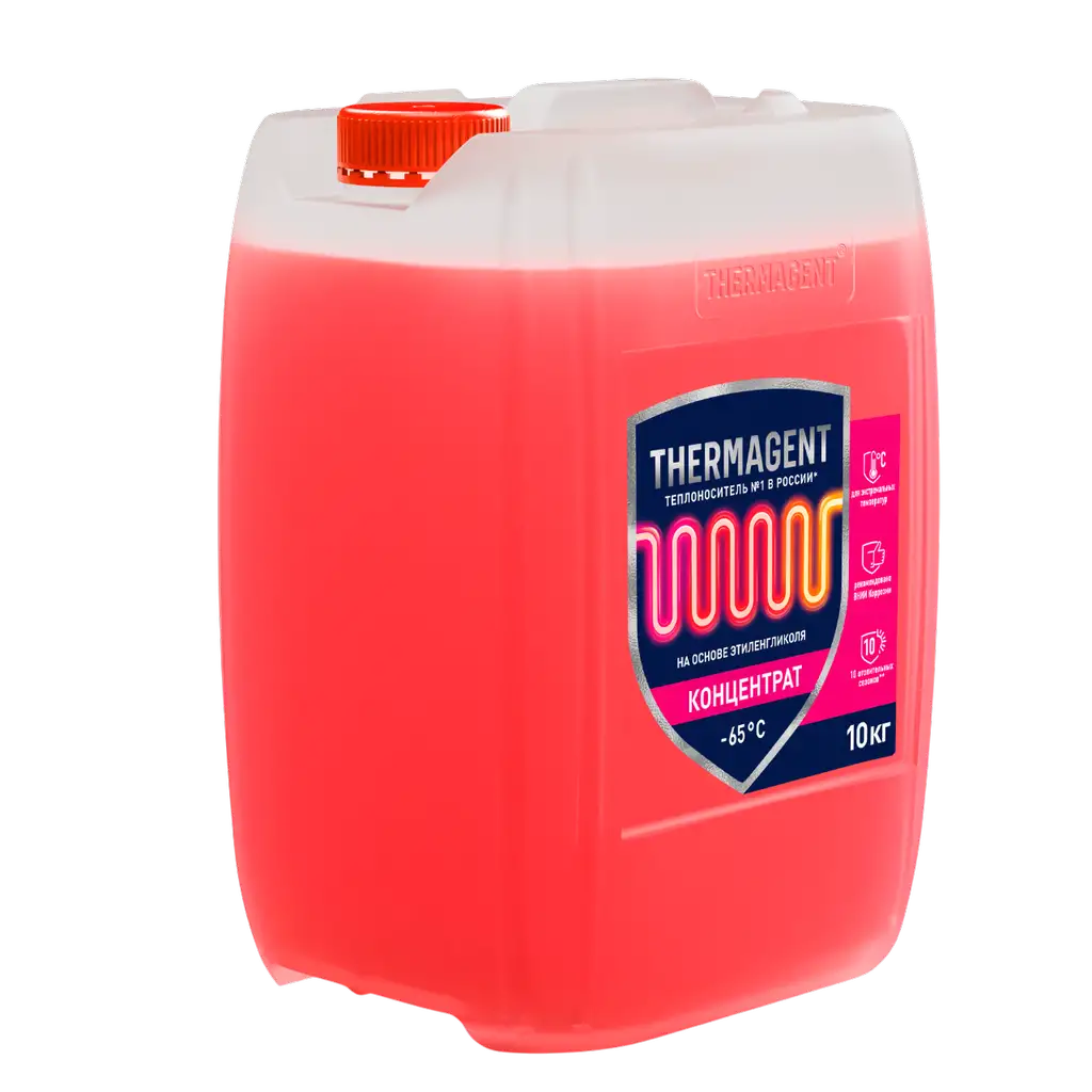Теплоноситель THERMAGENT -65 представляет собой водный раствор очищенного этиленгликоля, содержащий антикоррозионные, антипенные и антибактериальные присадки. Используется как низкозамерзающий теплоноситель в закрытых системах отопления, вентиляции и кондиционирования для жилых и производственных зданий, для систем охлаждения производственного оборудования и т.п.