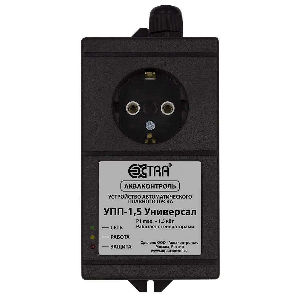 Акваконтроль УПП-1,5 Универсал - это устройство плавного пуска, предназначенное для управления и защиты однофазных электродвигателей насосов мощностью до 1,5 кВт в системах водоснабжения и водоподготовки. Оно обеспечивает плавный пуск и остановку электродвигателя, что снижает пусковые токи и продлевает срок службы оборудования.
