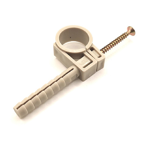 Дюбель-хомут из полипропилена служит для быстрого и надёжного крепления труб, кабелей или проводов диаметром 20 мм к бетонным, каменным, кирпичным и другим твёрдым основаниям, а также – к пустотелым кирпичам и пустотелым блокам. Обеспечивает лёгкий монтаж. Хомут уже с дюбелем и укомплектован шурупом нужной длины. Вам остается только просверлить отверстие, вставить хомут и вкрутить шуруп. Дюбель-хомут устойчив к механическим нагрузкам и гидроударам. Разъемное крепление позволяет легко и быстро вставить трубу в хомут. Наружное, смещенное расположение шурупа и эластичность хомута позволяют легко закрепить в нем трубу уже проложенной магистрали, без смещения оси. Конструкция хомута позволяет крепить в нем трубы с увеличенным наружным диаметром. Благодаря хомутному типу крепления может быть использован как подвижная и как неподвижная опора. Изделие предназначено для эксплуатации в широком диапазоне температур, учитывающих условия эксплуатации трубопроводов для горячего водоснабжения и отопл
