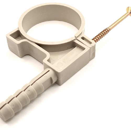 Дюбель-хомут из полипропилена служит для быстрого и надёжного крепления труб, кабелей или проводов диаметром 50 мм к бетонным, каменным, кирпичным и другим твёрдым основаниям, а также – к пустотелым кирпичам и пустотелым блокам. Обеспечивает лёгкий монтаж. Хомут уже с дюбелем и укомплектован шурупом нужной длины. Вам остается только просверлить отверстие, вставить хомут и вкрутить шуруп. Дюбель-хомут устойчив к механическим нагрузкам и гидроударам. Разъемное крепление позволяет легко и быстро вставить трубу в хомут. Наружное, смещенное расположение шурупа и эластичность хомута позволяют легко закрепить в нем трубу уже проложенной магистрали, без смещения оси. Конструкция хомута позволяет крепить в нем трубы с увеличенным наружным диаметром. Благодаря хомутному типу крепления может быть использован как подвижная и как неподвижная опора. Изделие предназначено для эксплуатации в широком диапазоне температур, учитывающих условия эксплуатации трубопроводов для горячего водоснабжения и отопл
