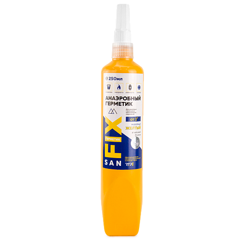 Герметик анаэробный 250мл, жёлтый ТМ SANFIX (резьбовой уплотнитель в виде пасты) – жидкое полимерное вещество, применяемое для герметизации металлических резьбовых соединений. Попадая в узкое безвоздушное пространство при соприкосновении с металлом материал полимеризуется (затвердевает), полностью перекрывая собой имеющееся свободное пространство внутри узла.