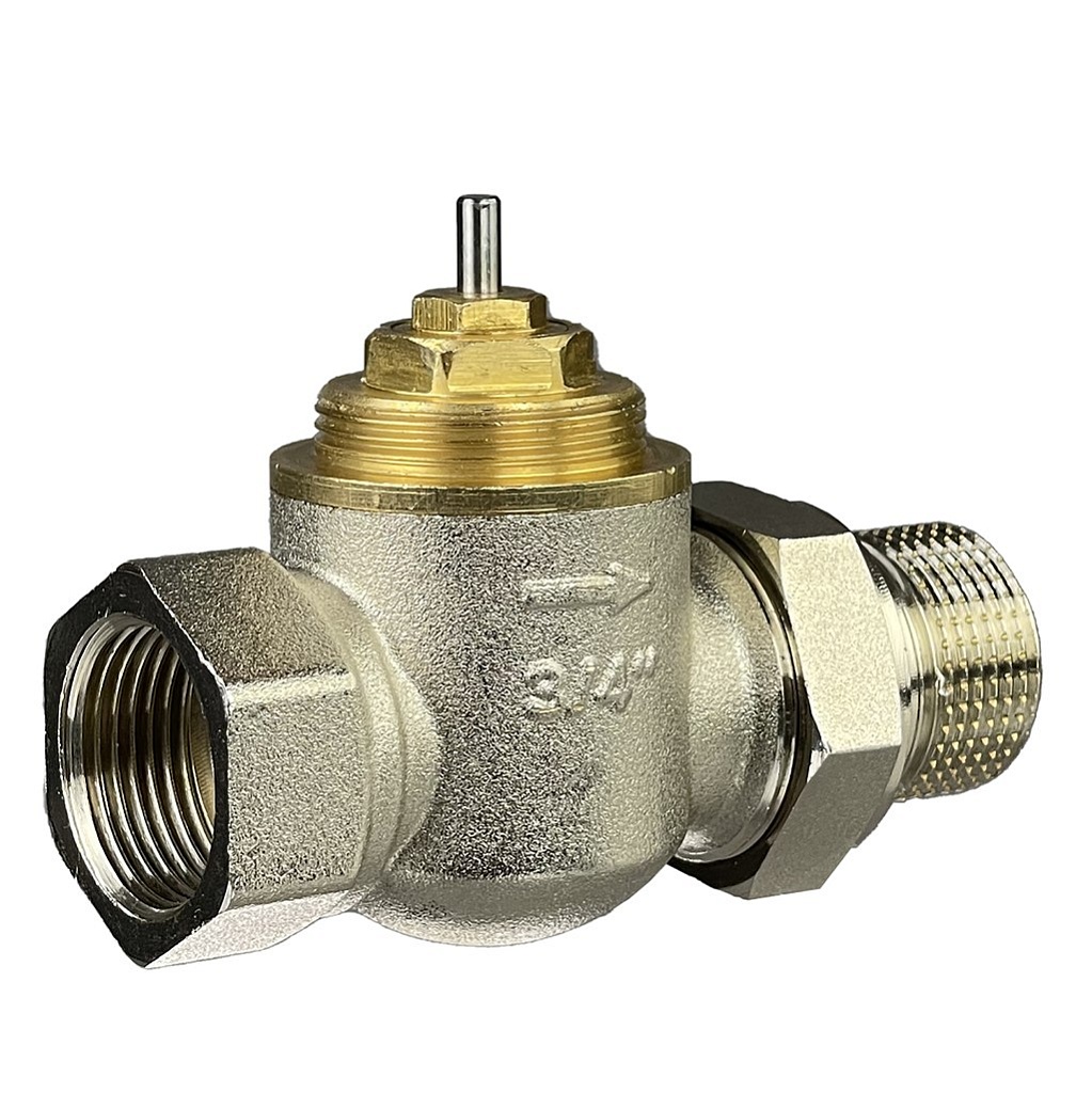 Прямой терморегулирующий клапан TR-G из никелированной латуни для однотрубных насосных систем водяного отопления. Обеспечивает автоматическую регулировку расхода воды и гликолевых растворов до 30% с фиксированной пропускной способностью, совместим с термоэлементами TR 84, TR 74 или приводами TWA-KR. Выдерживает давление 16 бар, температуру до +120 °C, максимальный перепад давлений 0,2 бар. Компактный с низким сопротивлением и полной герметичностью затвора.