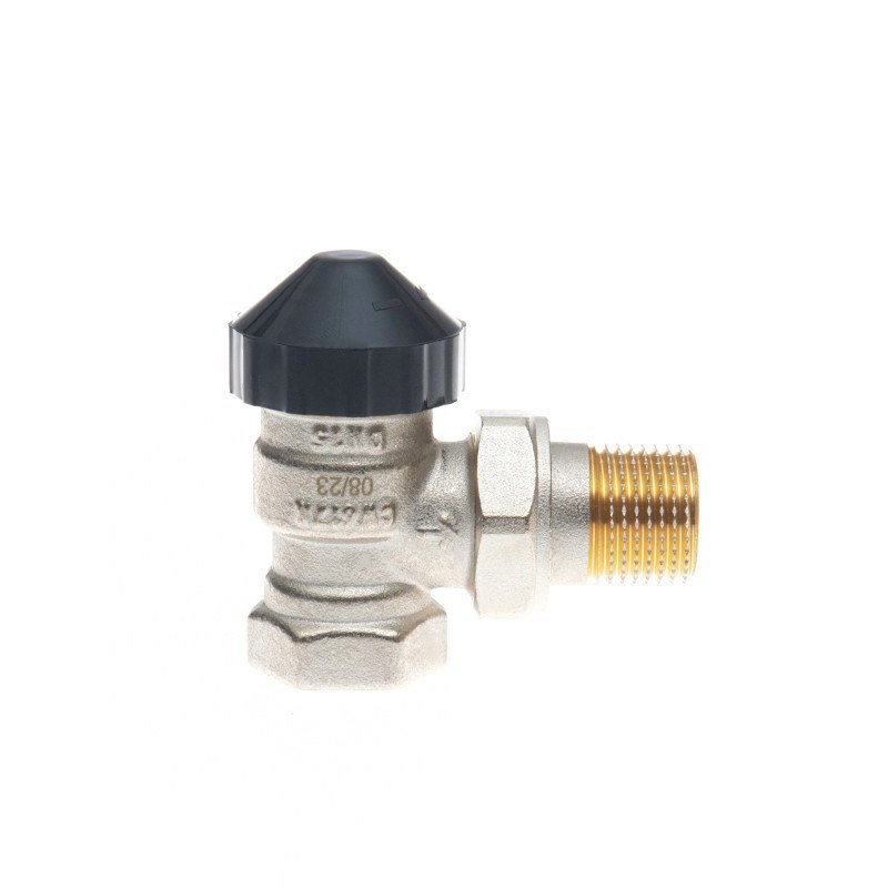 Угловой терморегулирующий клапан из никелированной латуни для двухтрубных систем водяного отопления. Обеспечивает точную гидравлическую балансировку с 6 ступенями предварительной настройки расхода воды и гликолевых растворов до 30%, совместим с термостатическими элементами M30x1,5. Выдерживает давление 10 бар, температуру до +120 °C, максимальный ΔP 0,2 бар. Компактный с низким гидравлическим сопротивлением и полной герметичностью затвора.