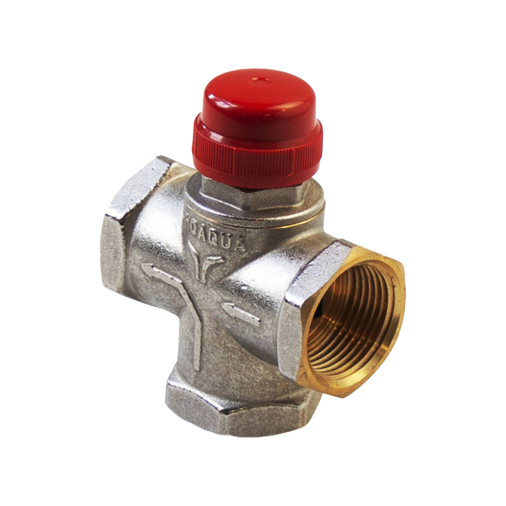 Трехходовой смесительный клапан обеспечивает смешение потоков теплоносителя из подающего и обратного контуров для создания нужной температуры в низкотемпературных системах отопления, включая теплый пол. Регулировка возможна вручную колпачком или термоголовкой с выносным датчиком. Латунный корпус выдерживает давление до 10 бар и температуру до 120°C, пропускная способность 3,3 м³/ч. Надежное уплотнение EPDM предотвращает протечки.