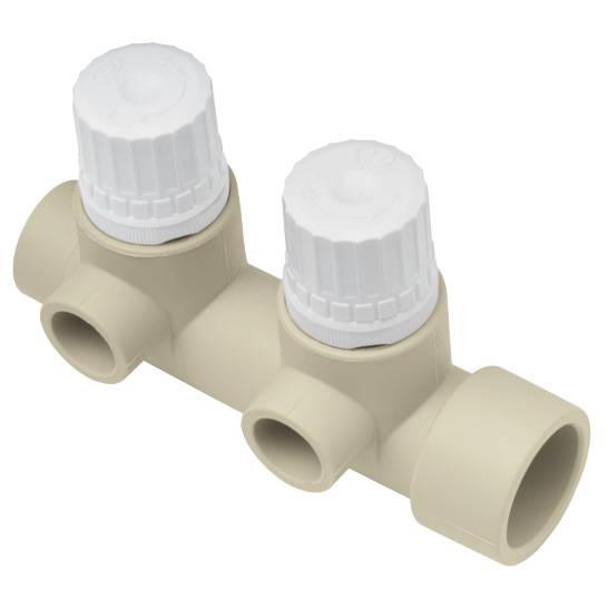 Двойной коллектор Ekoplastik служит для распределения потока жидкости от одного общего источника (стояка, котла, насосной группы) на два независимых потребителя. Установка термостатических вентилей на каждый отвод позволяет: