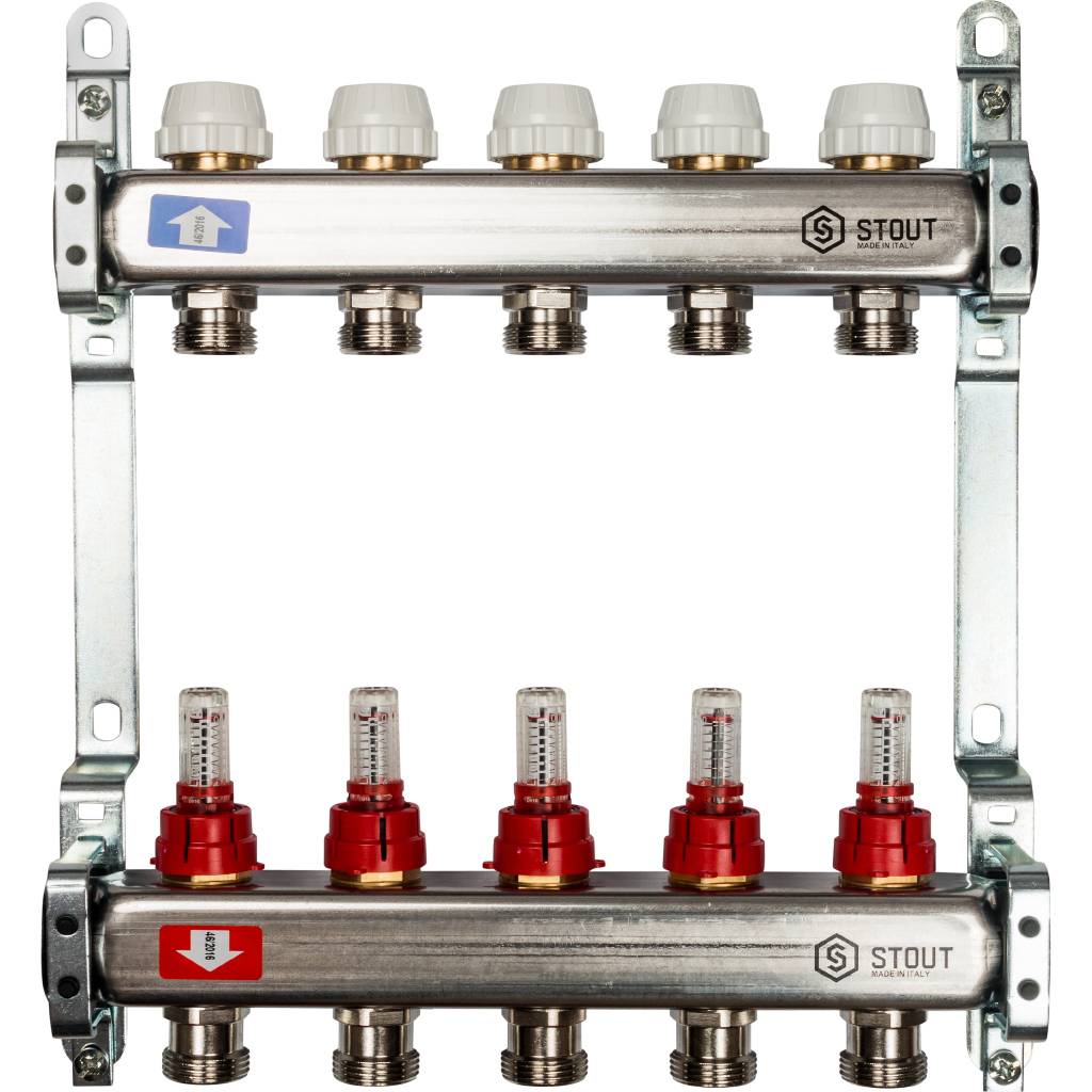 Коллекторные блоки STOUT производятся в Италии под тщательным контролем, проходя многочисленные тесты и сертификацию оборудования. Благодаря этому распределительные коллекторы STOUT обладают рядом преимуществ, среди которых надежность конструкции, качественные материалы, оптимальная комплектация блока, варианты исполнения для теплого пола и для радиаторной разводки.
