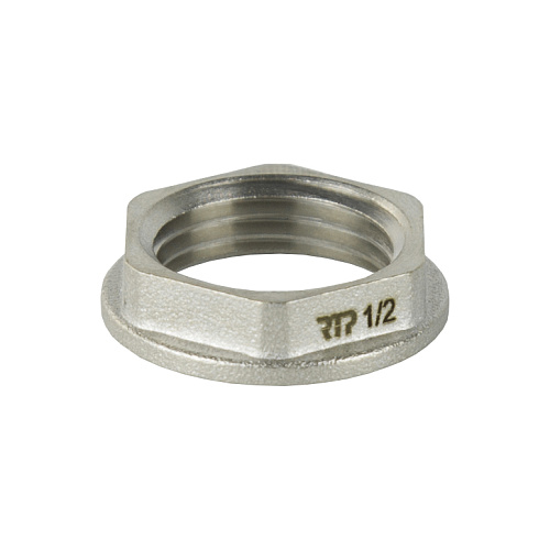 Контргайка латунная с ребордой ТМ РТП системы SIGMA применяется в трубопроводах водоснабжения и отопления. Предназначена для накручивается перед основной гайкой, чтобы надежно зафиксировать резьбовое соединение и предотвратить его развинчивание. Монтаж контргайки очень простой. Шестигранный корпус позволяет применять гаечный ключ. Правильный монтаж резьбовых латунных изделий гарантирует бесперебойную работу всей системы отопления и водоснабжения, исключая протечки. Важным преимуществом латунных контргаек РТП - гальваническое покрытие. Процесс никелирования делает латунные фитинги стойкими к коррозии. Срок службы систем отопления и водоснабжения с применением латунных фитингов – более 50 лет.