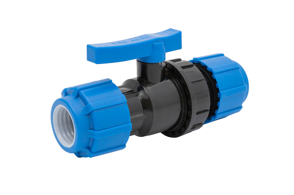 Кран шаровой Политэк ПНД компрессионный разъемный 25 ТПК-АКВА, 555220025