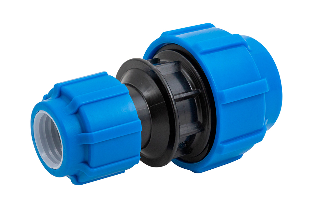 Фитинги «ТПК –АКВА» (Политэк) из полипропилена применяются для соединения полиэтиленовых труб кольцевого сечения по ГОСТ 18599 и/или ГОСТ 32415-2013 номинальным диаметром от 20 до 110 мм, предназначенные для транспортирования воды с температурой до 40° С и максимальным рабочим давлением 1,6 МПа в системах хозяйственно-питьевого водоснабжения, а также для транспортирования других жидких и сред, к которым материал фитингов и их уплотнительных элементов химически стоек. Составные части фитинга (кроме уплотнительного элемента) производятся методом литья под давлением. Толщина стенки в любом месте фитинга рассчитана на максимальное рабочее давление 1,6 МПа (PN 16). Соединение гайки поз. 5 и корпуса поз. 1 осуществляется при помощи трапециевидной резьбы, которая позволяет выдерживать большие осевые нагрузки Обладают стойкостью к большинству химических веществ.