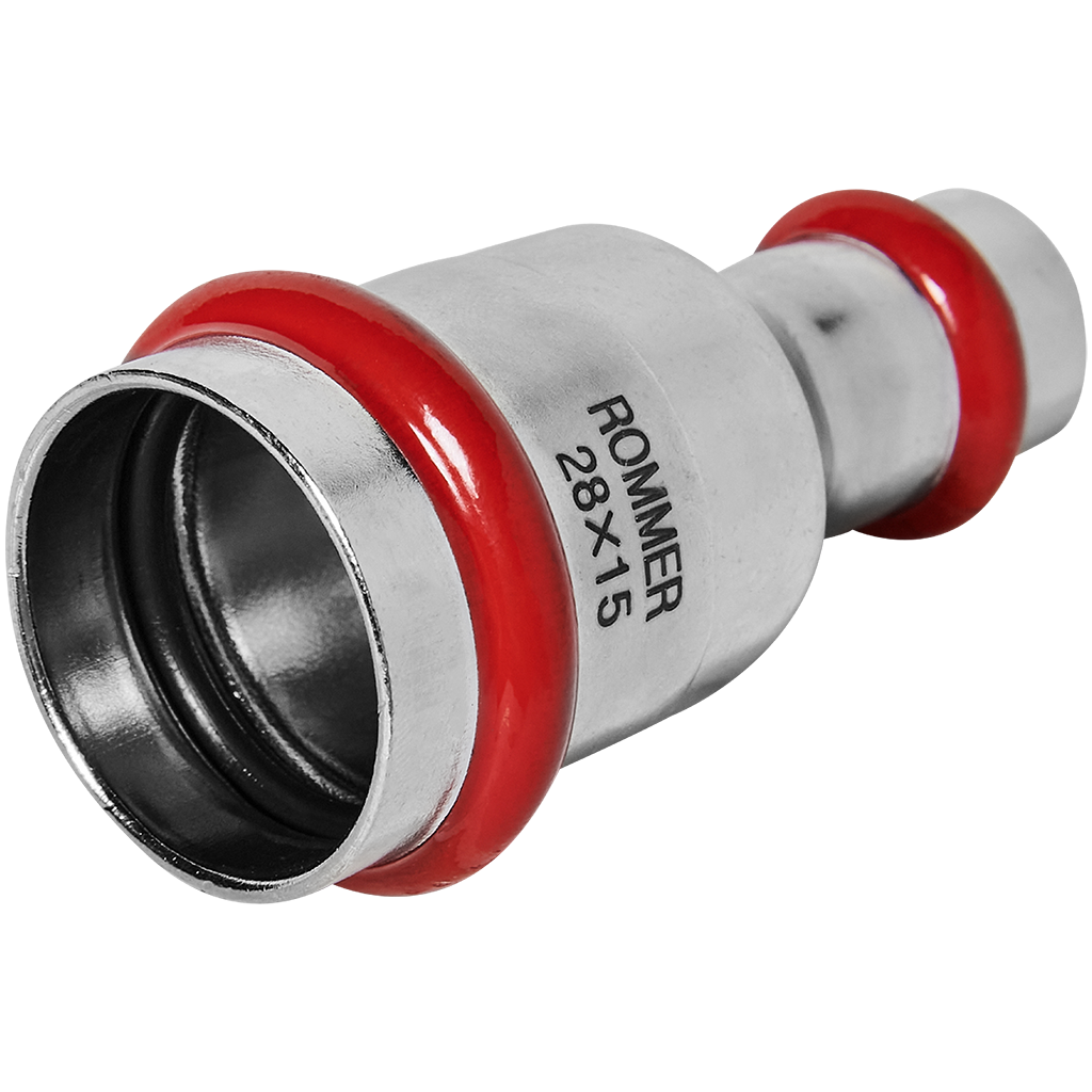 Ключевые слова: муфта переходная ROMMER 28х15, фитинг прессовой из нержавеющей стали, RSS-0018-2815, соединение труб разного диаметра, фитинг для нержавеющей трубы, пресс-муфта 28 на 15, монтаж без сварки, для системы отопления и водоснабжения.