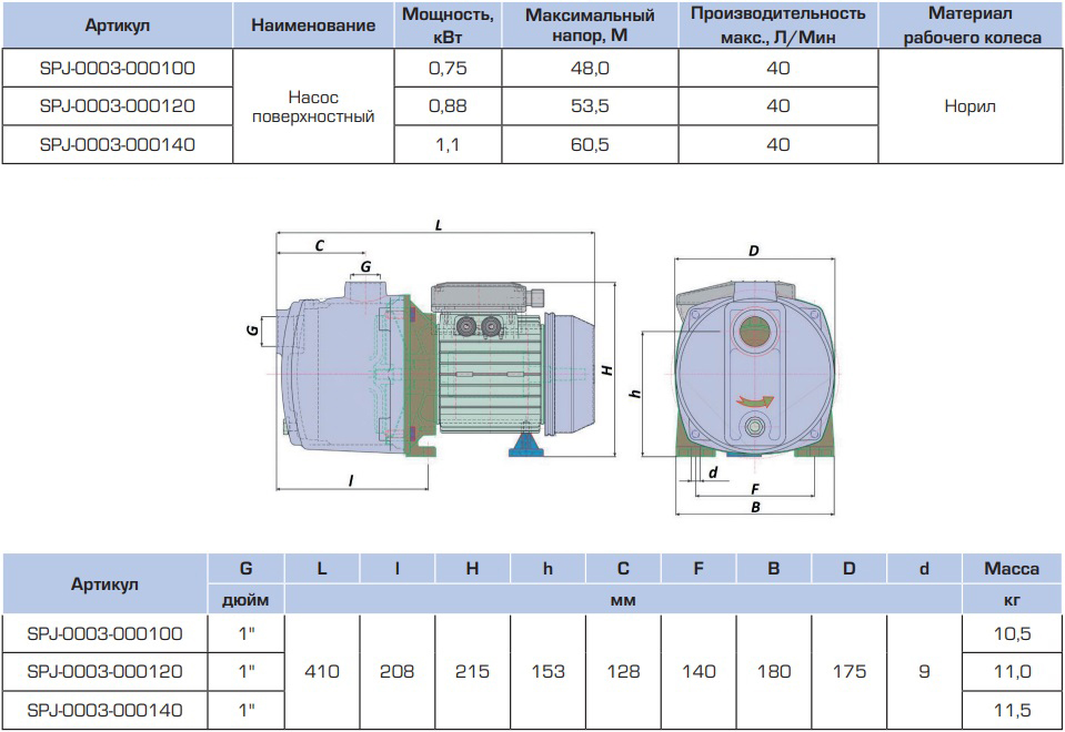 При включении насоса, жидкость, которая находится в гидравлической части насоса, под действием центробежной силы направляется от центра колеса к периферии, что приводит к созданию разряжения в центральной части рабочего колеса, при этом на периферии давление повышается, в результате этого жидкость из насоса поступает в напорный трубопровод. Поверхностные самовсасывающие насосы STOUT оснащаются однофазными электродвигателями, в обмотках статора установлена тепловая защита, отключающая электродвигатель при повышении температуры обмоток выше допустимого значения.