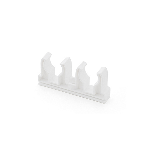 Опора двойная РТП для пластиковых труб предназначена для фиксации двух параллельно идущих полипропиленовых трубы в системах отопления и водоснабжения. Используется очень часто, к примеру, в системах отопления, в случае, когда прямая подача и обратка проходят в одном направлении, а также в системах водоснабжения, обеспечивая параллельный монтаж холодной и горячей подачи воды к сантехническому оборудованию. Опора изготовлена из первичного экологически безопасного пластика PP-R, применяется в системе в качестве подвижной (скользящей) опоры, обеспечивает необходимую подвижность трубам при линейном расширении. Правильный монтаж системы отопления и водоснабжения увеличивает срок службы PP-R трубопроводов и составляет не менее 50 лет