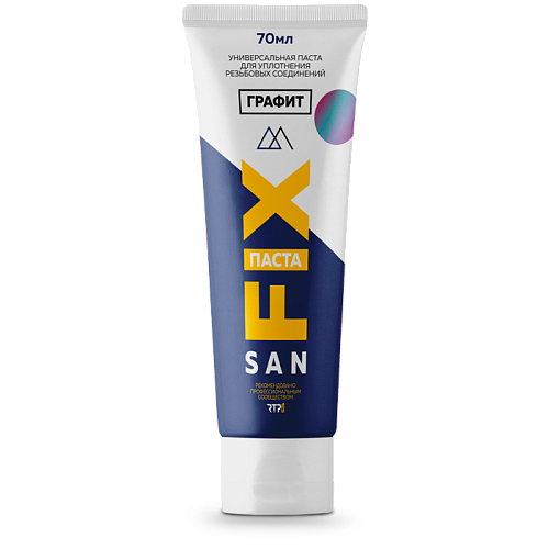 Паста для уплотнения резьбовых соединений 70мл, туба, графит ТМ SANFIX (резьбовой уплотнитель, применяется со льном) - вещество высокой вязкости серого цвета, в состав которого входит минеральное масло и наполнители, эмульгаторы, вода, а также консервант и ингибитор коррозии. Обработка льна пастой Sanfix предупреждает его гниение, ломкость, появления насекомых и грызунов, эти факторы являются важными при эксплуатации и хранении льняного волокна.