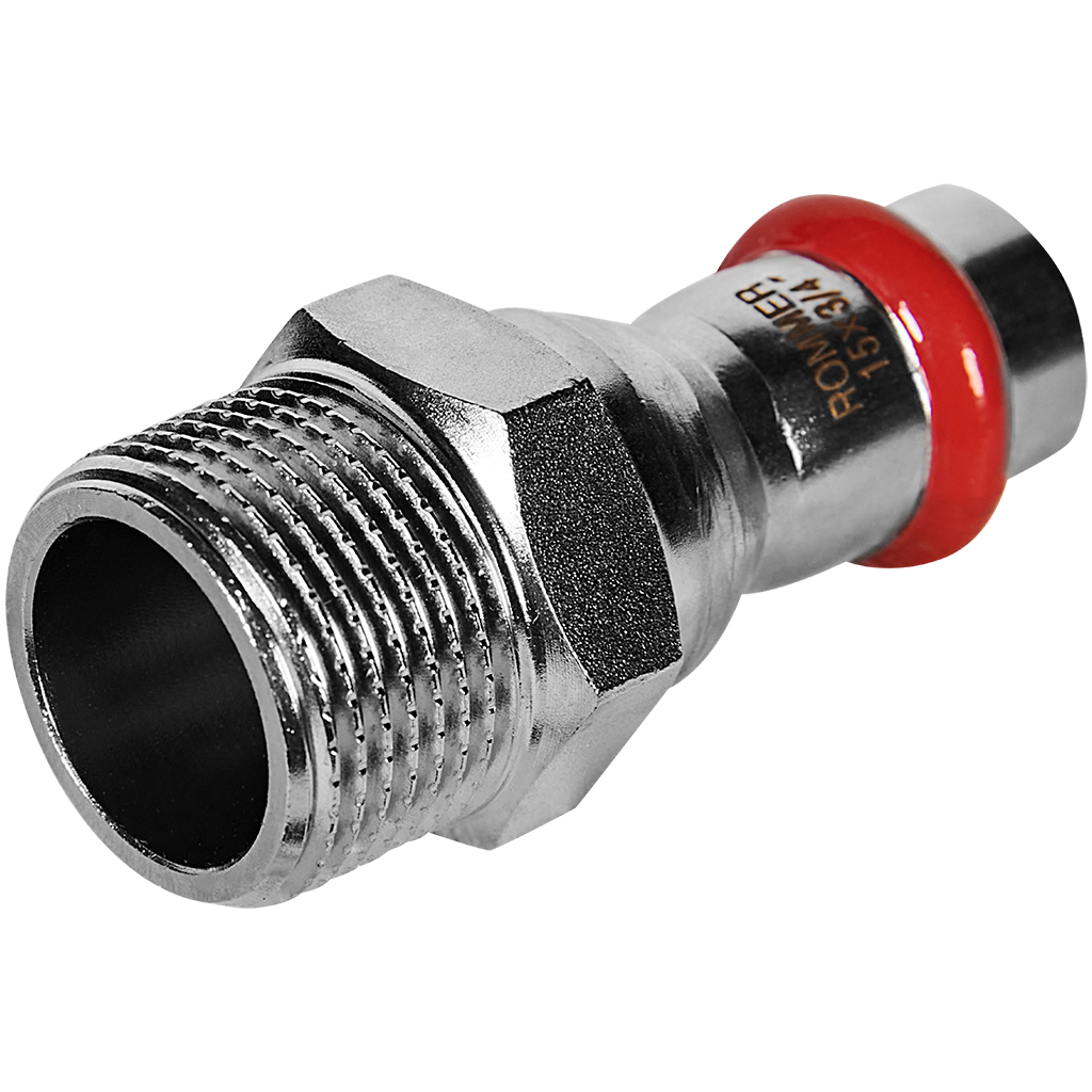 Переходник ROMMER 15х3/4" отличается исключительной надежностью. Благодаря материалу изготовления, он не подвержен ржавчине и отложению накипи, что особенно важно для систем питьевого водоснабжения. Пресс-соединение, создаваемое с помощью специального инструмента, является неразъемным и по своей герметичности и долговечности превосходит многие традиционные методы.