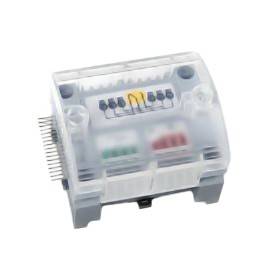 Насосный модуль REHAU (230 В) предназначен для автоматизированного управления циркуляционным насосом в системах напольного отопления. Он обеспечивает включение или выключение насоса в зависимости от текущей тепловой нагрузки системы, что позволяет оптимизировать энергопотребление и поддерживать заданный температурный режим. Модуль подключается непосредственно к клеммной колодке REHAU (например, серии Nea HС) и управляется сигналами от комнатных термостатов. Устройство работает от напряжения 230 В и обеспечивает надежную координацию работы насоса и сервоприводов отопительных контуров. Некоторые модели обладают настраиваемым временем холостого хода насоса (например, 0, 5, 10 или 15 минут), что повышает эффективность системы.