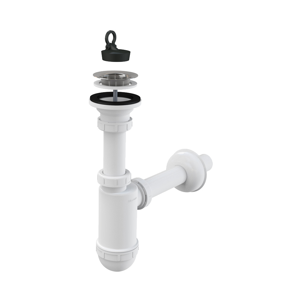 Надежный сифон AlcaPlast A411 бутылочного типа предназначен для эффективного отвода воды из умывальников и раковин. Изделие выполнено из прочного полипропилена и оснащено износостойкой решеткой из полированной нержавеющей стали диаметром 63 мм. Особенностью модели является телескопическая конструкция, которая обеспечивает дополнительную гибкость при установке и позволяет регулировать высоту сифона. Стандартный диаметр подключения к канализации DN32 и высокая пропускная способность гарантируют защиту от неприятных запахов и долговечность эксплуатации в условиях ограниченного пространства и нестандартного монтажа.
