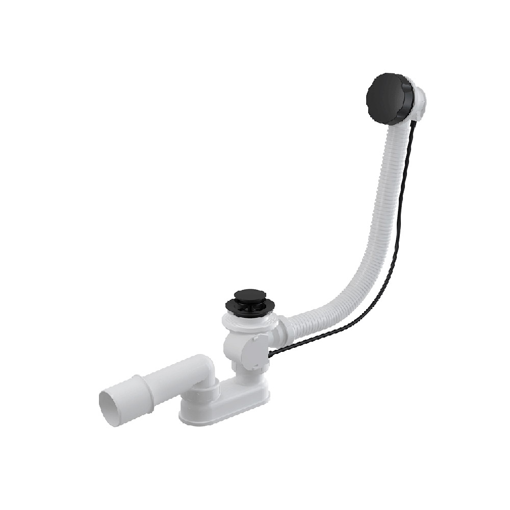 Автоматический сифон AlcaPlast A55BLACK в актуальном черном матовом исполнении представляет собой комплексное и современное решение для ванны. Система управляется поворотной ручкой, расположенной на переливе, которая дистанционно открывает или закрывает донный клапан, исключая необходимость погружения рук в воду. Изделие выполнено из прочного пластика, а видимые металлические элементы имеют долговечное матовое покрытие, устойчивое к коррозии, царапинам и известковому налету. Надежный гидрозатвор гарантирует защиту от неприятных запахов из канализации, а разборная конструкция обеспечивает простоту обслуживания и долговечность эксплуатации, гармонично дополняя дизайнерские интерьеры ванных комнат.