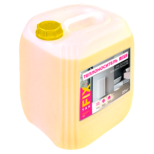 Теплоноситель -35°С 20 кг на основе этиленгликоля с силикатными присадками. Теплоноситель предназначен для всех типов помещений.