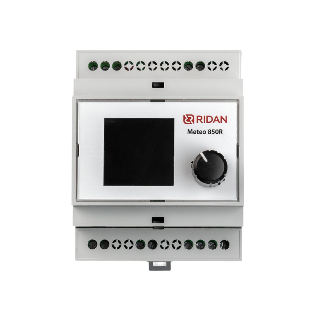 Терморегулятор Ридан Meteo 850R служит для автоматического контроля кабельных систем электрообогрева. Устройство помогает избежать появления наледи и сосулек, предотвращает замерзание талых вод и обеспечивает беспрепятственный отвод воды в частях кровельных конструкций. К таким элементам относятся водосточные желоба, водосточные трубы и иные участки кровли, которые склонны к обледенению. Для функционирования терморегулятор опирается на информацию от внешних датчиков — датчика температуры наружного воздуха и датчика кровли Ридан Roof 850R, который нужно приобретать отдельно.