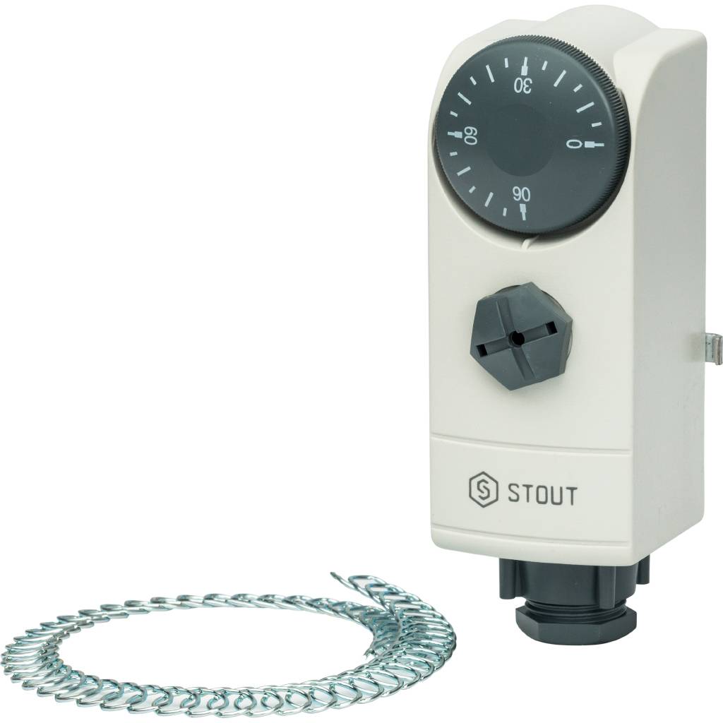Механический накладной термостат STOUT WTC-ES представляет собой надежное решение для автоматического регулирования температуры теплоносителя в системах отопления и горячего водоснабжения. Устройство функционирует по принципу температурного расширения жидкости, обеспечивая стабильное поддержание заданных параметров или аварийное отключение нагревательного оборудования. Благодаря контактному способу монтажа, прибор легко фиксируется непосредственно на поверхности трубы с помощью специальной пружинной ленты, что исключает необходимость врезки в трубопровод и упрощает установку. Данная модель отличается универсальностью и может управлять работой циркуляционных насосов, горелок котлов или электротермических приводов. Корпус термостата защищен от внешних воздействий и оснащен удобной рукояткой для точной настройки температурного режима. Использование STOUT WTC-ES позволяет оптимизировать расход энергоресурсов, предотвратить перегрев системы и обеспечить комфортную эксплуатацию как в классических радиаторных контурах, так и в системах водяного теплого пола. Глубокая интеграция с оборудованием STOUT гарантирует долговечность и высокую точность срабатывания автоматики.