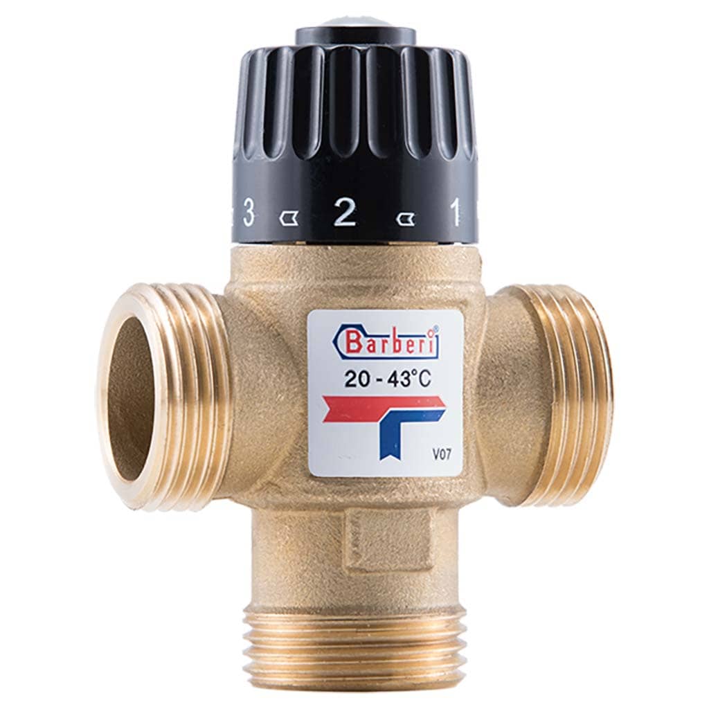 Термостатический смесительный клапан V07M250AAN от Barberi предназначен для регулирования температуры теплоносителя в системах тёплого пола и радиаторного отопления. Диапазон регулировки температуры составляет 20–43 °C, а коэффициент потока — 2,5 м³/ч.