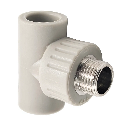 Тройник комбинированный PPR наружная резьба 20х 1/2,  серый, РТП
