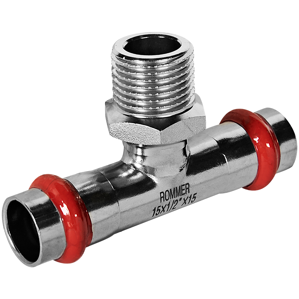 Тройник-переходник ROMMER предназначен для монтажа ответвлений в инженерных системах, где требуется соединение труб разного диаметра: