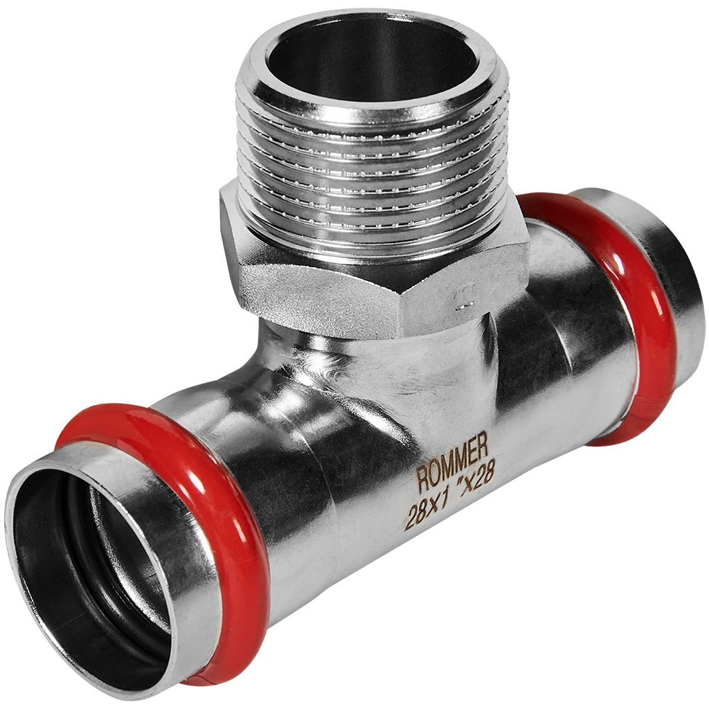 Тройник-переходник НР ROMMER 28х1 из нержавеющей стали прессовой