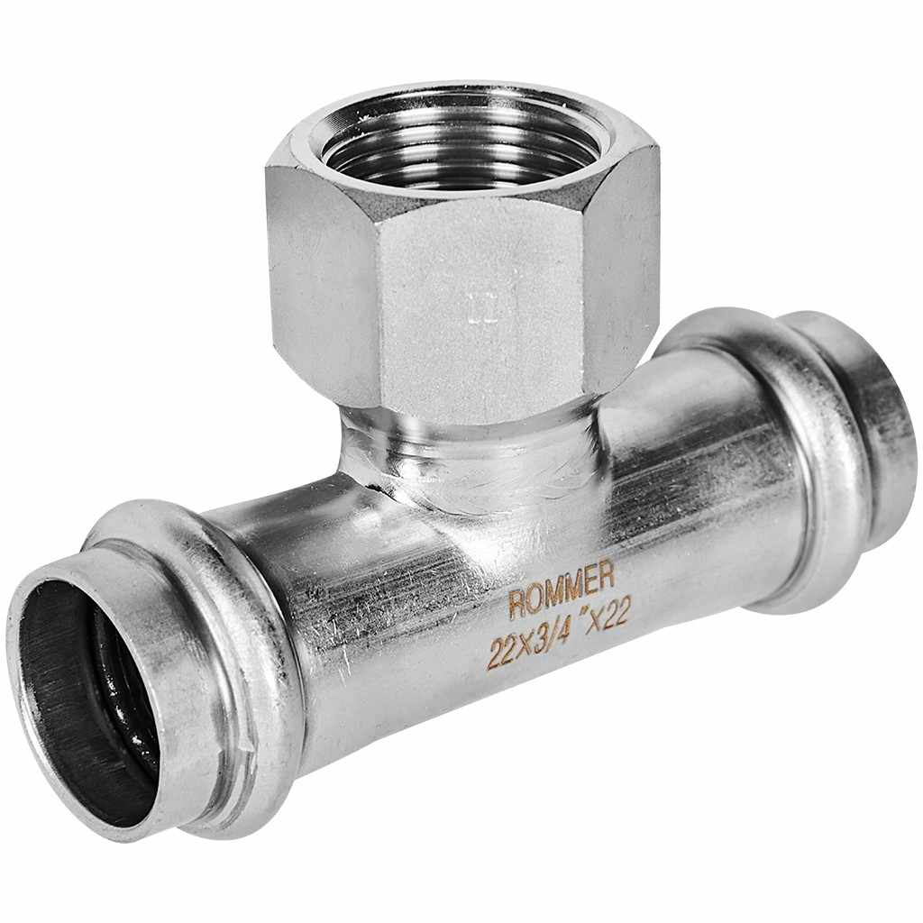 Тройник-Переходник ROMMER ВПр-ВР, 22х3/4, из нержавеющей стали прессовой, RSS-1015-002234