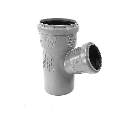 Тройник канализационный ТМ РТП предназначен для монтажа разветвления трубопроводов в системах внутренней канализации.В качестве уплотнителей используются резиновые кольца манжетного типа с распорным вкладышем, соответствующие требованиям DIN 4060.
