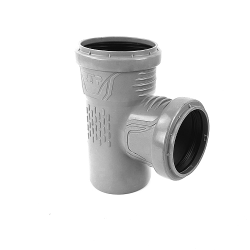 Тройник канализационный ТМ РТП предназначен для монтажа разветвления трубопроводов в системах внутренней канализации.В качестве уплотнителей используются резиновые кольца манжетного типа с распорным вкладышем, соответствующие требованиям DIN 4060.