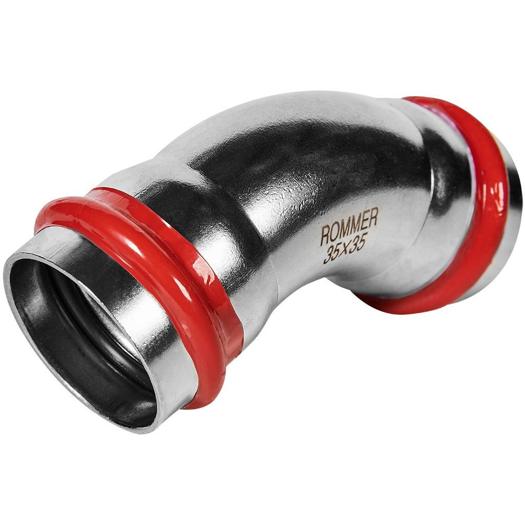Угольник ROMMER 45°-ВПр, 35 мм: пресс-фитинг из нержавеющей стали