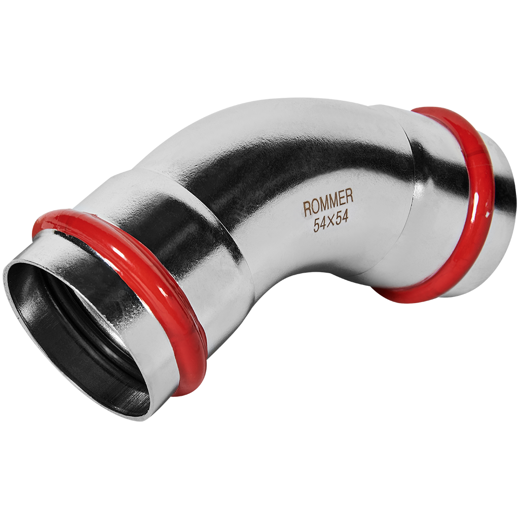 Угольник ROMMER 45°-ВПр, 54 мм: пресс-фитинг из нержавеющей стали