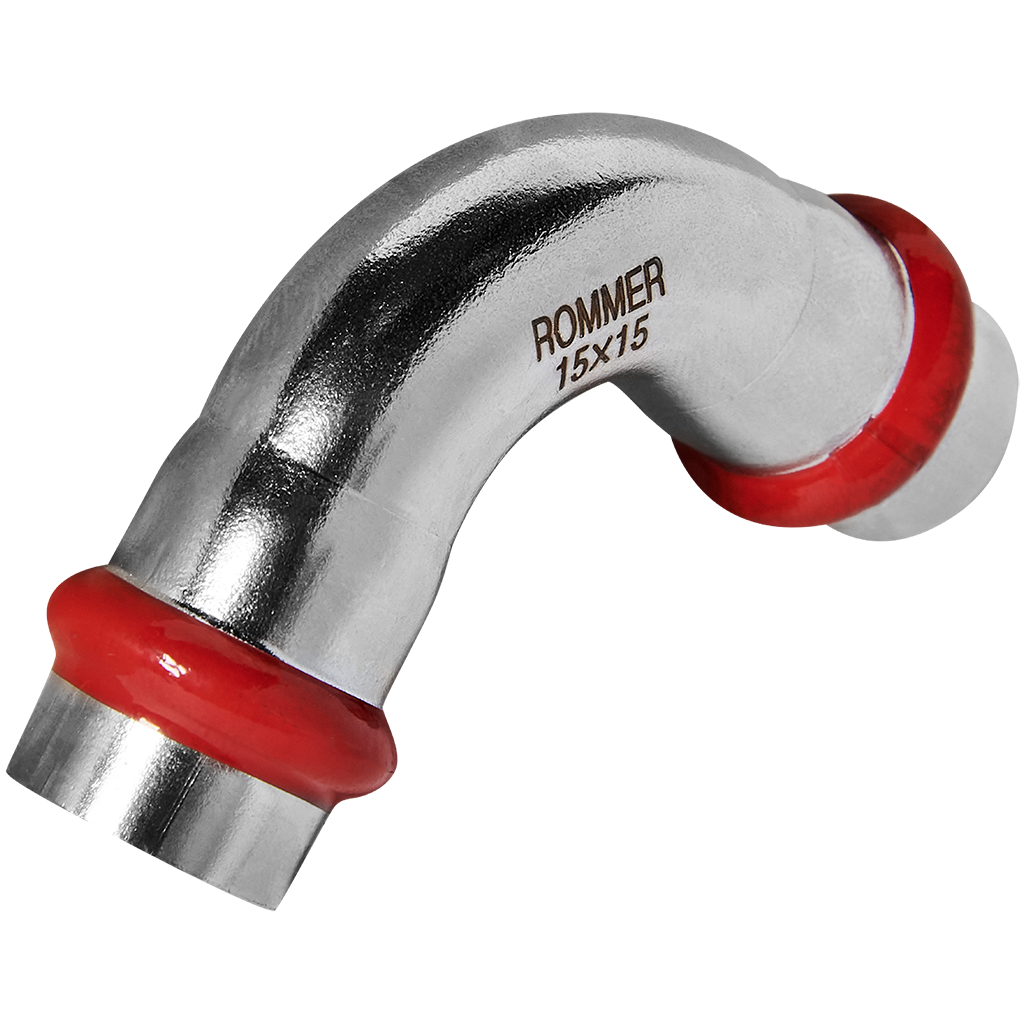 Угольник ROMMER 90° — это высококачественный пресс-фитинг из нержавеющей стали, предназначенный для создания долговечных и надежных соединений в инженерных системах. Изделие с диаметром 15 мм обеспечивает поворот трубопровода на 90 градусов, что позволяет выполнять аккуратные и компактные разводки.