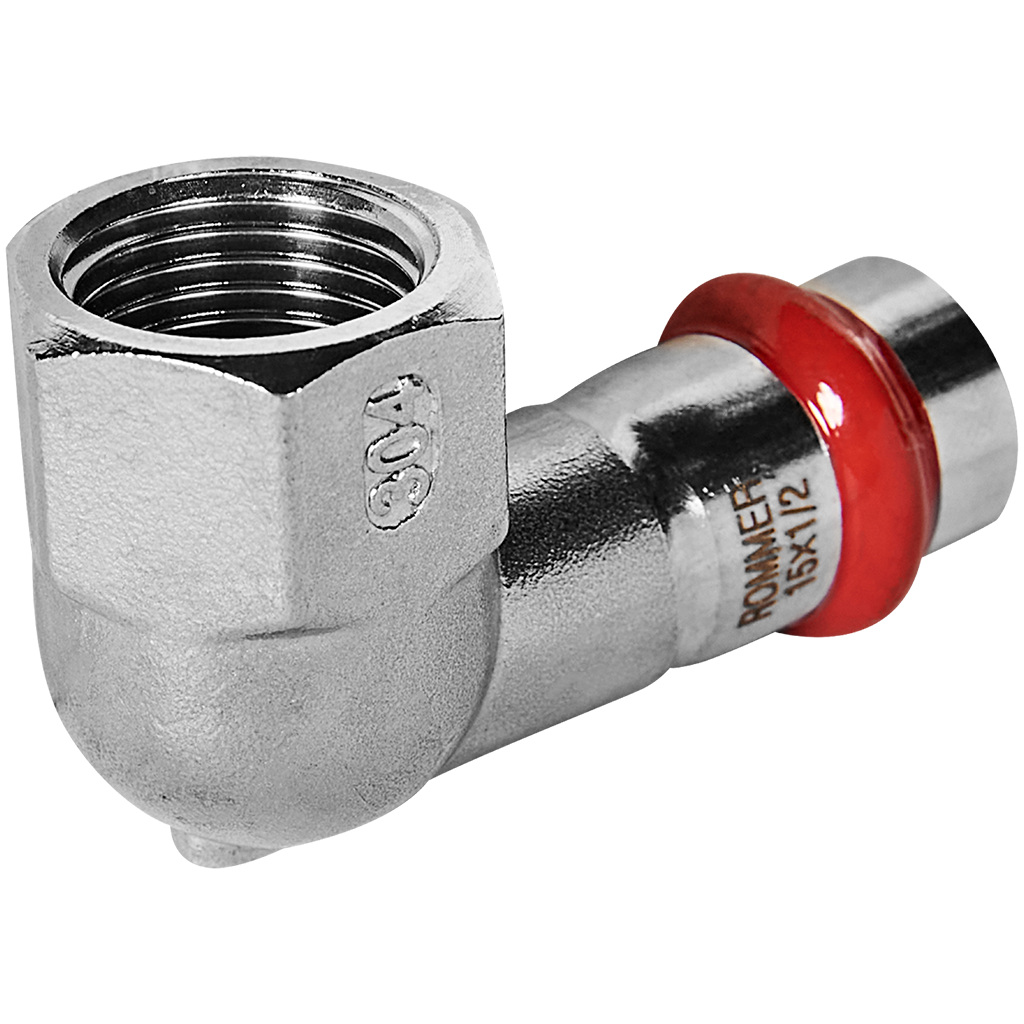 Угольник-переходник ROMMER — это оптимальное решение для монтажа долговечных и необслуживаемых систем. Пресс-технология обеспечивает скорость монтажа и высочайшую надёжность, а использование нержавеющей стали делает фитинг универсальным для любых условий. Сочетание прессовой гильзы и резьбы в одном фитинге предоставляет монтажникам максимальную гибкость при проектировании и сборке узлов подключения сантехнического оборудования.