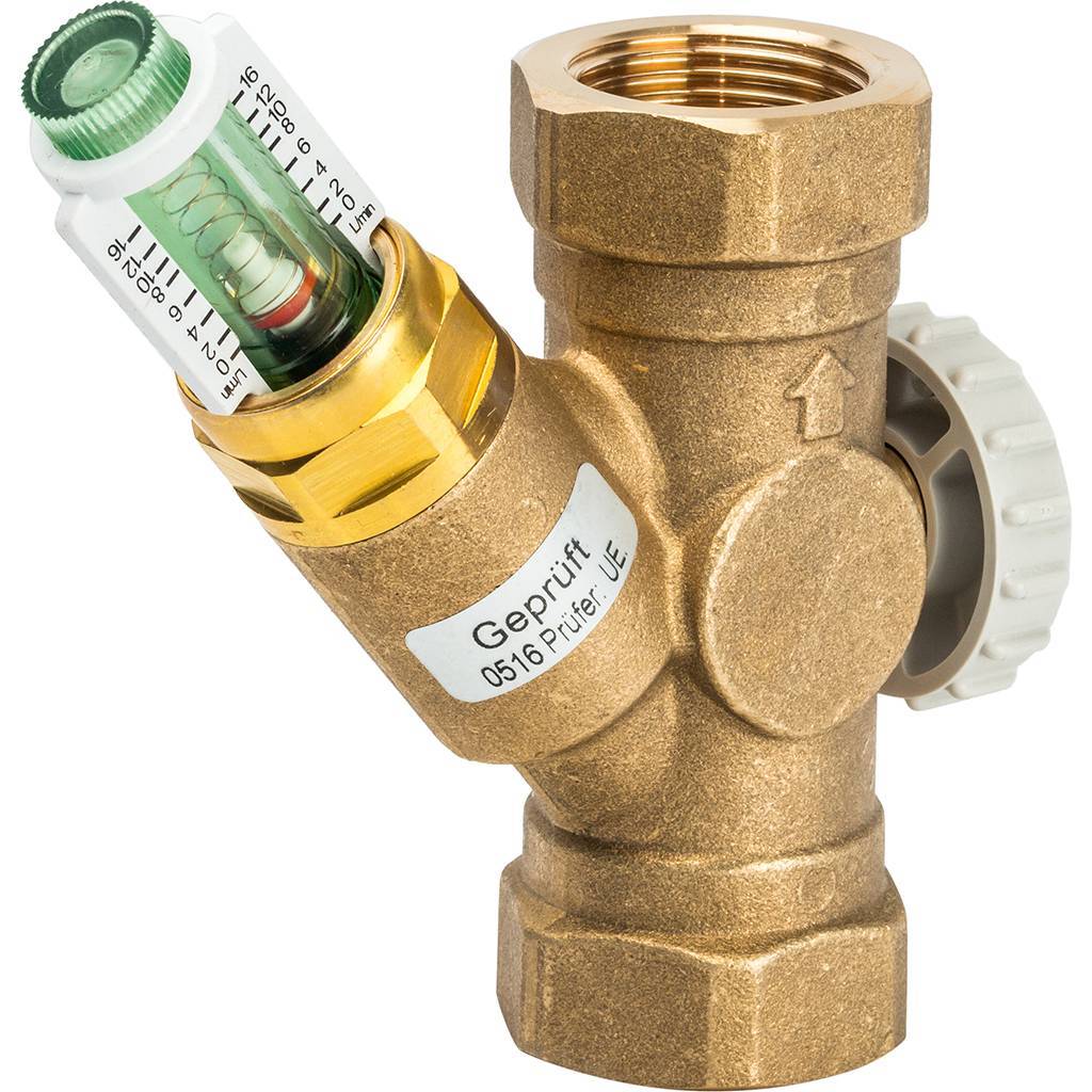 Корпус балансировочного вентиля изготовлен из латуни, шкала расходомера – из ударопрочной пластмассы.