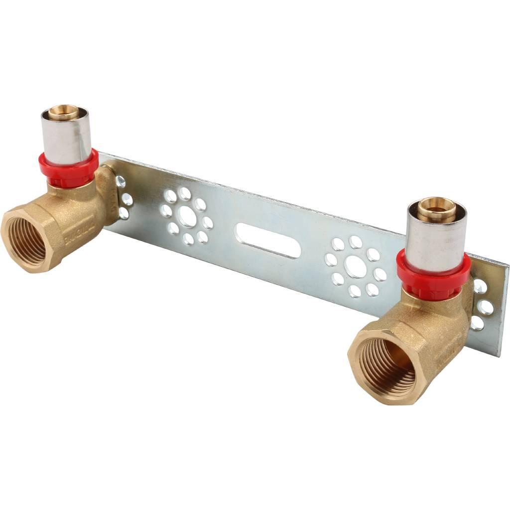 Двойная водорозетка TIEMME на планке — это готовое монтажное решение из высококачественной латуни, предназначенное для быстрой и точной установки точек водоразбора под настенный смеситель. Планка жестко фиксирует два фитинга на стандартном межцентровом расстоянии (обычно 150 мм), что исключает ошибки при монтаже и облегчает последующее подключение сантехники. Изделие обладает высокой коррозионной стойкостью благодаря никелированному покрытию и подходит для скрытой прокладки в штробах или за гипсокартонными перегородками. Продуманная конструкция с монтажными отверстиями гарантирует надежную фиксацию в стене, обеспечивая стабильность всей системы водоснабжения на долгие годы.