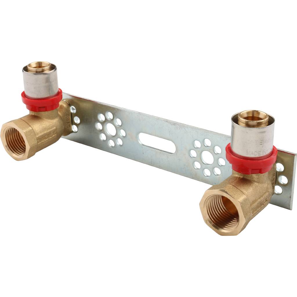 Двойная водорозетка TIEMME на планке — это готовое монтажное решение из высококачественной латуни, предназначенное для быстрой и точной установки точек водоразбора под настенный смеситель. Планка жестко фиксирует два фитинга на стандартном межцентровом расстоянии (обычно 150 мм), что исключает ошибки при монтаже и облегчает последующее подключение сантехники. Изделие обладает высокой коррозионной стойкостью благодаря никелированному покрытию и подходит для скрытой прокладки в штробах или за гипсокартонными перегородками. Продуманная конструкция с монтажными отверстиями гарантирует надежную фиксацию в стене, обеспечивая стабильность всей системы водоснабжения на долгие годы.
