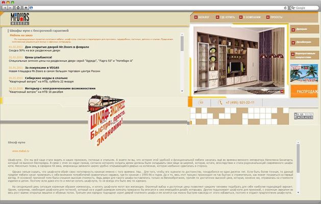 Как мы и планировали, сейчас сайт www.mebel.ru — незаменимый источник информации, как для новых клиентов компании, так и для тех, кто покупает в Mr.Doors не в первый раз.